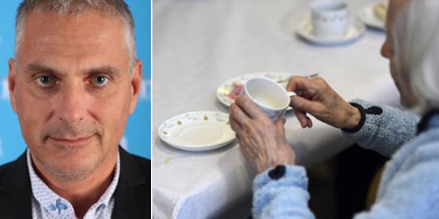 Kåre Friberg (M) och arkivbild från ett äldreboende. Moderaterna/TT